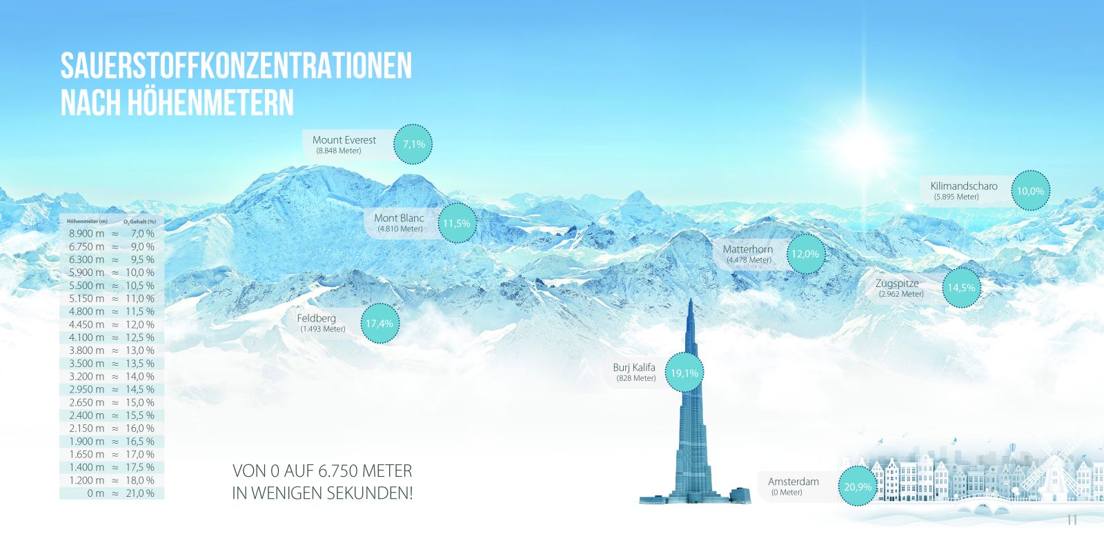 Das System simuliert dabei Höhenlagen zwischen 1.200 und 6.750 Metern – vergleichbar mit einem sanften Auf- und Abstieg in den Bergen. Eine Sitzung dauert etwa 40 Minuten, verläuft vollkommen passiv und wird meist als tief entspannend empfunden. Viele Patienten schlafen dabei sogar ein.